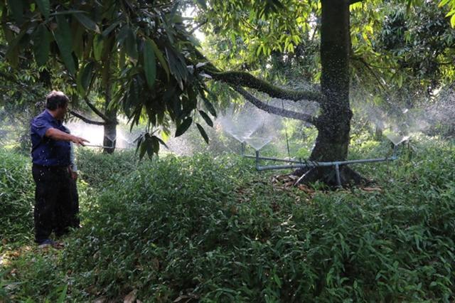 | A durian orchard is equipped with an automatic irrigation system in Tiền Giang Province’s Cai Lậy District. — VNA/VNS Photo Minh Trí |