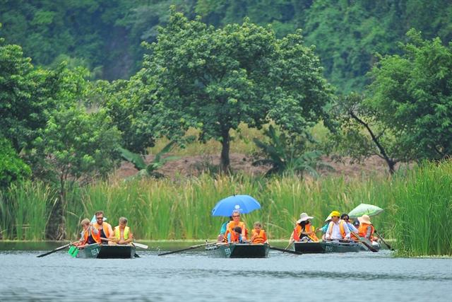 | Foreign tourists enjoy boat tours around the Tràng An tourism complex. — VNA/VNS Photo Minh Đức |