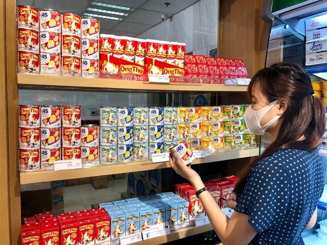 | A customer holding a Vinamilk product at a supermarket. The dairy producer's shares lost more than 1.6 per cent on Friday, weighing on the market sentiment. Photo vinamilk.com.vn |